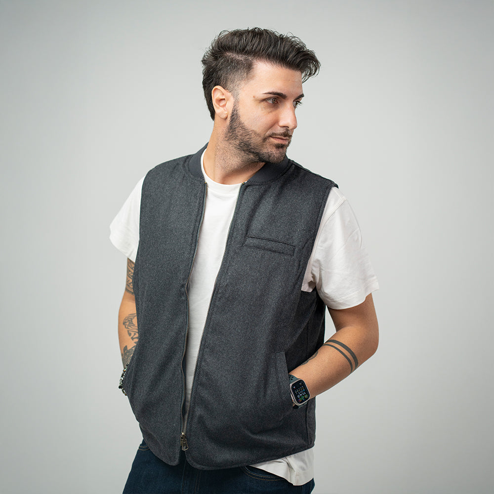 Bl'ker Gilet Wool Reversibile Grey Uomo