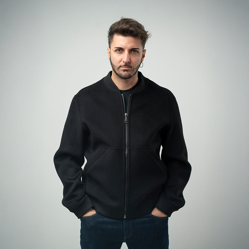 Giubbino Amaranto Modello Bomber, Polsini e Cannolè a Coste, Zip e Tasche frontali